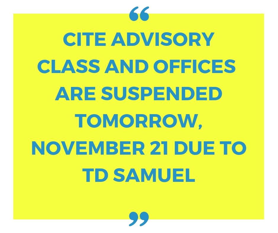 cite advisoryclass and offices are suspended tomorrow,november 21