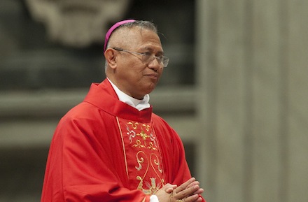 Archbishop Jose Palma of Cebu, Philippines, is seen before receiving a pallium from Pope Benedict XVI during a Mass in St. Peter’s Basilica at the Vatican June 29. The woolen pallium is a sign of the archbishop’s communion with the pope and his pastoral responsibility as shepherd. (CNS photo/Alessandro Serrano, Catholic Press Photos) (July 12, 2011) See POPE-PALLIUMS (SECOND UPDATE) June 30, 2011.